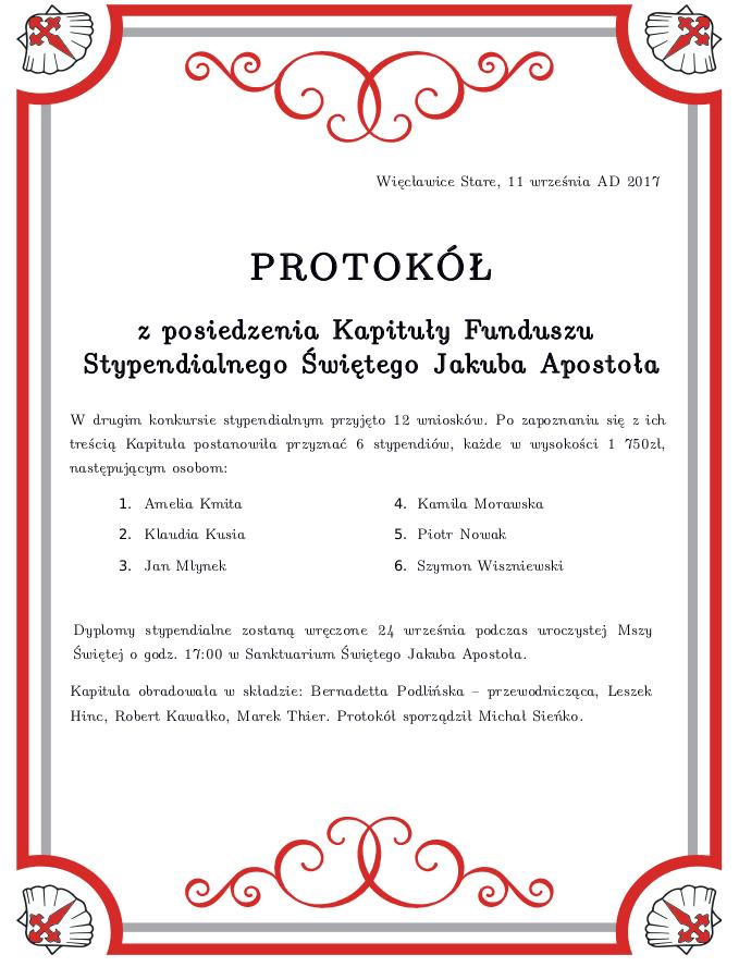 Protokół z posiedzenia Kapituły Funduszu Stypendialnego św. Jakuba